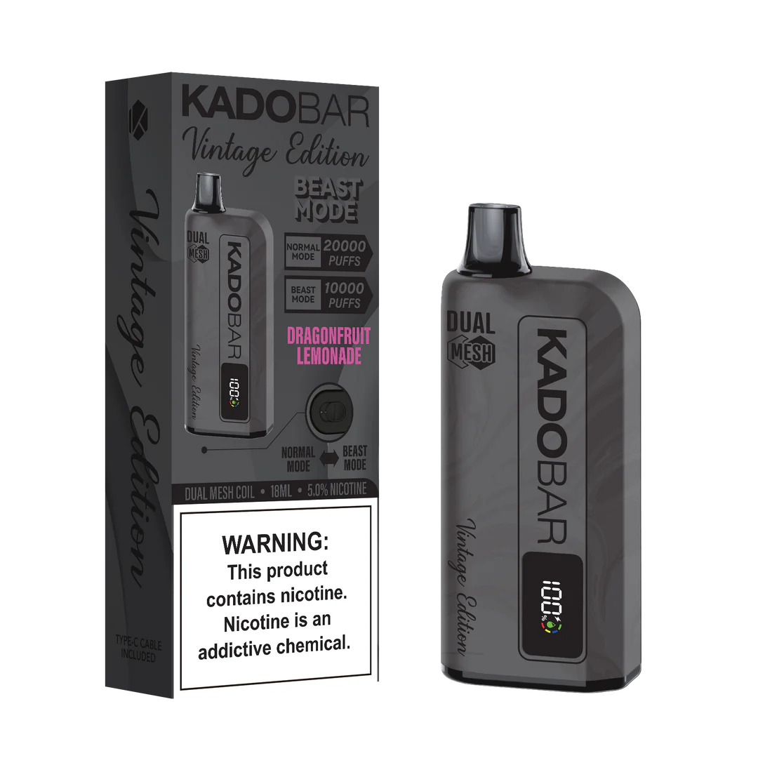 Kado Bar recently debuted its Vintage edition disposable, which includes 20000 puffs of tasty and cold vintage flavors. The Kado Vintage Edition improves the Beast Mode. Dragonfruit Lemonade Kado Bar in Normal mode, you receive 20000 puffs; in Beast mode, you receive 10,000 puffs. Kado Bar is one of the most recognized and important brands in the vaping business. The exquisite design of the gadget highlights Kado’s painstaking attention to detail. Its double mesh coil produces flavorful, dense vapor while increasing device efficiency.