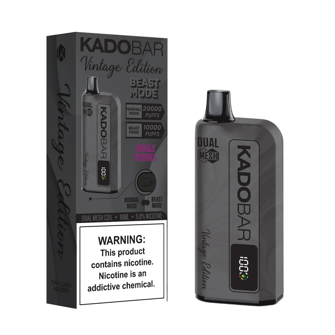 Kado Bar recently debuted its Vintage edition disposable, which includes 20000 puffs of tasty and cold vintage flavors. The Kado Vintage Edition improves the Beast Mode. Jungle Berries Kado BarĀ  in Normal mode, you receive 20000 puffs; in Beast mode, you receive 10,000 puffs. Kado Bar is one of the most recognized and important brands in the vaping business. The exquisite design of the gadget highlights Kado’s painstaking attention to detail. Its double mesh coil produces flavorful, dense vapor while increasing device efficiency.